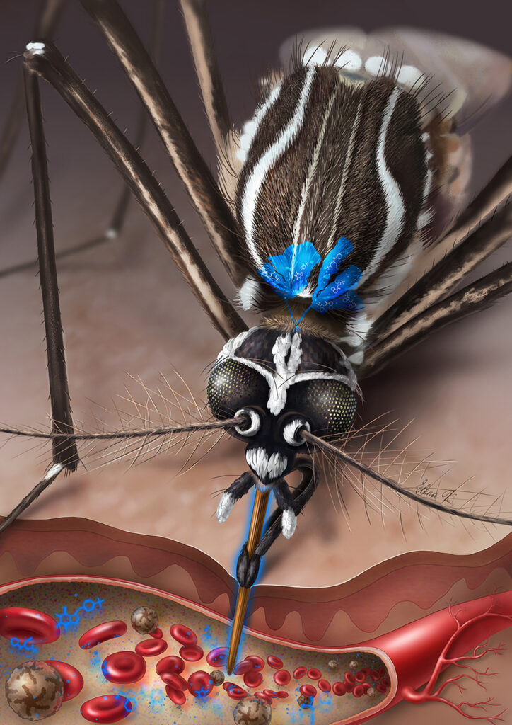 “When we manipulate that system, it shuts off the salivary gland and gives them dry mouth. Similar to humans, without saliva, the mosquito can’t feed. So, the mosquito doesn’t suck blood,” he says.